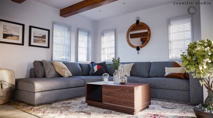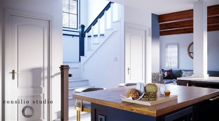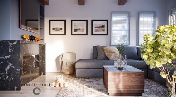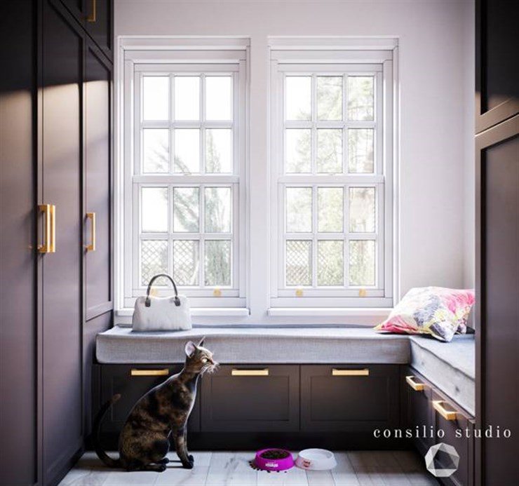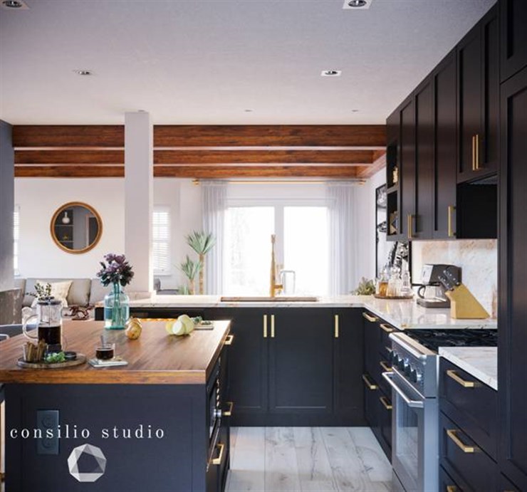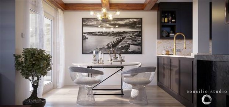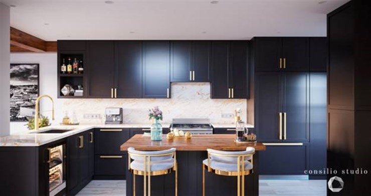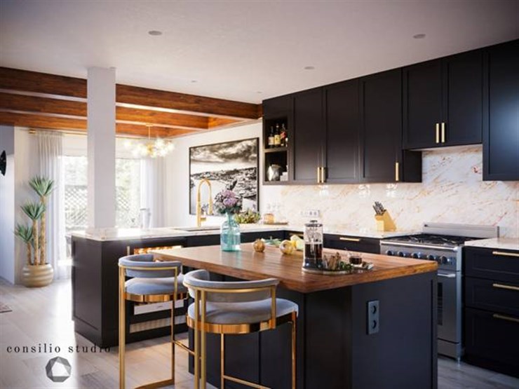Private VillaContrast with the blacks and whites with warm wood and gold accents.
